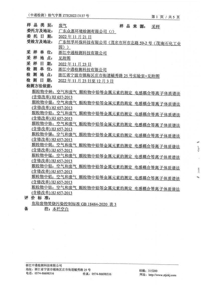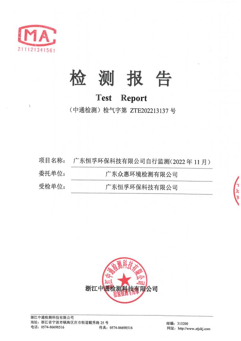 (恒孚)22年12月廢氣檢測報告ZTE202213137